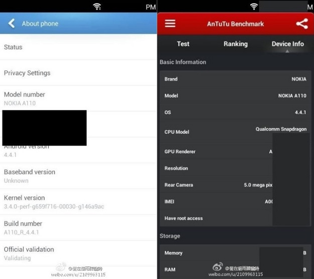 A Microsoft felvásárlási ajánlatának bejelentésekor már szárnyra kaptak az első pletykák, hogy az együttműködési megállapodás lejártával a Nokia Android-alapú mobilokkal fogja bővíteni a kínálatát, mely kapcsán egy titokzatos „Mountain View” kódnéven fejlesztett modell is hallatott magáról. Idő közben a megbízható forrásairól ismert @evleaks is megosztott néhány képet egy „Normandy” nevű modellről, mely valahol az Asha és a Lumia termékvonal között landolhat. Az AnTuTu sebességmérő szoftver oldalán is felbukkant készülékről idő közben kiderült, hogy Android 4.4.1 KitKat operációs rendszer köré épül, mely mellé 480 x 854 képpontos kijelzőt és természetesen Qualcomm Snapdragon processzort kapott. A Nokia RM-980 A110 készülék fejlesztése a legfrissebb pletykák szerint a telefonos részleg eladását követően sem áll le, vagyis lehetséges, hogy később újra lesznek majd Nokia okostelefonok.