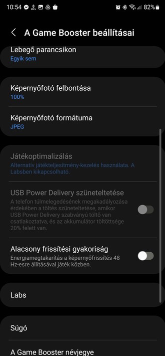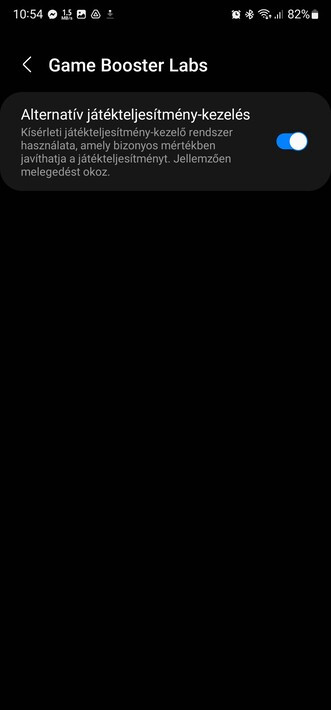 Ezt viszont sokan kifogásolták a több százezres készülékektől, így a Samsung gyorsan lépett, és az európai piacokon befutott az AVC6 végződésű frissítőcsomag, amely erre megoldást kínál. Egyfelől többlépcsős hardveroptimalizálást kapunk, amivel nem mellesleg a kamera teljesítménye és a telefon biztonsága is előrelép, és kevésbé korlátozza a lóerőket a rendszer a játék korai szakaszában. Emellett a Game Launcher játékindító Game Booster fejezete a Labs menüpont alatt felkínál egy alternatív játékteljesítmény-kezelés nevű opciót, amely megengedőbb a teljesítmény korlátozását illetően. Ez viszont persze nagyobb melegedést hozhat, szóval azért a dolog félmegoldás hardverspecifikus problémákra.