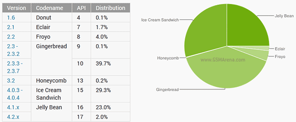 A Google tavaly júliusban indította útjára az Android 4.1 Jelly Bean operációs rendszert, mely relatív piaci részesedése az elmúlt hét hónap alatt 23 százalékig emelkedett. A novemberben bemutatott Android 4.2 Jelly Bean változat térnyerése még ennél is lassúbbnak tűnik, hiszen március végére is alig lépte át a 2 százalékot. A legelterjedtebb változat továbbra is 2010 decemberében bejelentett Android 2.3 Gingerbread, mely az összes használatban lévő készülék 39,7 százalékán teljesít szolgálatot. Az Ice Cream Sandwich változat részesedése februárban enyhén visszaesett, de márciusban ismét bővülést mutatott és így 29,3 százalékos szintet ért el. A Samsung Galaxy S4 premierje valószínűleg sokat lendít majd a 4.2-es változat térnyerésén, az olcsó modellek áradata pedig a Jelly Bean platform 4.1-es kiadásának részesedését emelheti. A Google statisztikáiból az is kiderült, hogy az Android-alapú okostelefonok 80 százaléka körülbelül 4 hüvelykes megjelenítővel bír, melyek képpontsűrűsége 240 vagy 320 dpi. További információ a Google fejlesztői oldalán található az alábbi linken.
