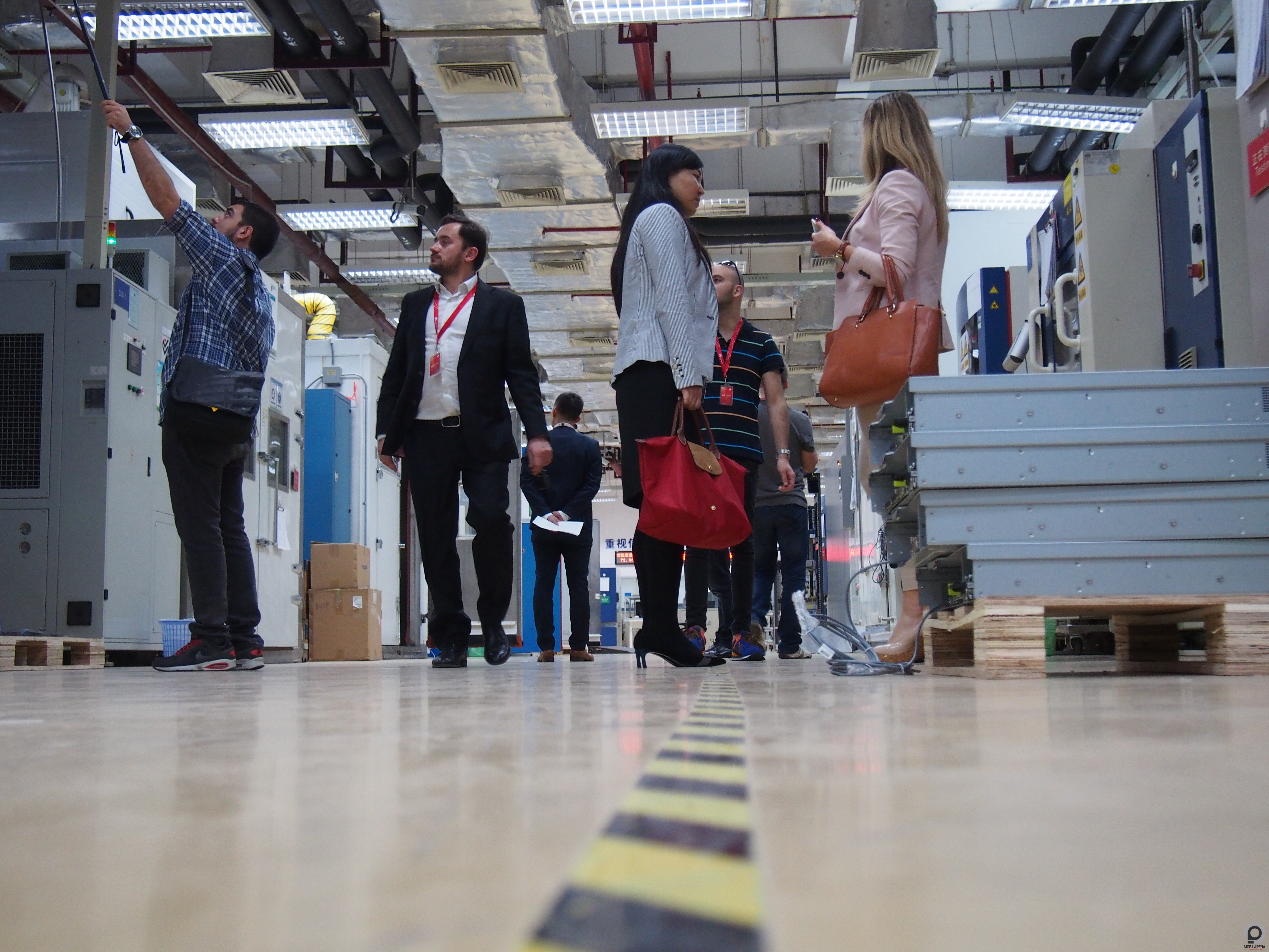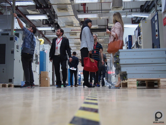 A gyár Donggouan városban van, ez egy órányi buszozás a központtól. Itt nagyon szigorú biztonsági ellenőrzés van, fémdetektoros kapun kell belépnünk, elvették az összes telefont és kamerát és árgus szemeket vetettek a karórámra, hogy nincs-e benne fényképezőgép. Ennek nem csak az az oka, hogy magát a gyárat védik az ipari kémkedéstől, de mint kiderült egy csomó robot is Huawei fejlesztés, olyanok, amelyek más gyártóknál nincsenek. A gyárban állandó a zaj, a munkások két óránként kapnak 10 percnyi pihenőt. Minden készülék átesik emberi minőségellenőrzésen is, mielőtt a dobozba kerül, egy P8 összerakása tippem szerint olyan 10-12 perces folyamat - persze a chipek, a kijelző, a kamera és a ház is mind előre készen van, a gyártósoron a robotok ezeket gyorsan és precízen, lépésről-lépésre illesztik össze.