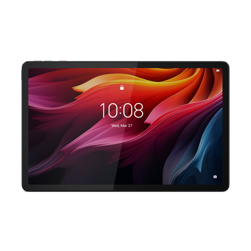 A hátlapon egy 13 MP-es kamera foglal helyet, mellette ott a LED villanó. Elfért a 3,5 mm-es csatlakozó a rövid oldal szélén a kereten, alulra került négy Pogo pin tartozékok csatlakoztatására. A Type-C port USB 2.0-s. A széleken összesen négy hangszóró, ezek sztereóban szólalnak meg és megvan a Dolby Atmos minősítés. A készülékház 268,7 x 168,96 x 7,15 mm és 520 gramm, fémből van és csak szürke színben készül, jópofa adalék a narancs színűre festett bekapcsoló gomb és az, hogy IP52-es védett a tablet.