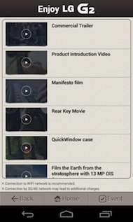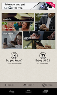 A Did you know? menüpont számos videót tartalmaz a készülék újdonságaival kapcsolatban, az előző bekezdésben említett funkciók mellett a kamera képességei, a telefont távirányítóvá alakító QuickRemote, a hang alapú vezérlést biztosító Voice Mate és az érintés nélküli hívásfogadást lehetővé tévő Answer Me is bemutatásra kerül. Végül, de nem utolsósorban érdemes benézni az Enjoy LG G2 menüpontba is, mely további felvételeket tartalmaz, természetesen az újdonsággal a főszerepben.
