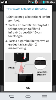 A G2 ezek mellett egy igen impozáns extrára is képes: a telefon tetszőleges távirányító szerepét át tudja venni, eltanulva tőle a vezérlést, ami hasznos lehet, ha az adott készüléket nem ismeri fel a G2 (ez régebbi berendezések esetében előfordulhat, esetemben a hangrendszerrel volt probléma). A funckió eléréséhez az új eszköz hozzáadása menüben az általános távirányító pontot kell kiválasztani. Ekkor először egy nevet kell megadni, majd egy speciális felületen szépen össze lehet válogatni, milyen gombokat szeretnénk felvenni a virtuális eszközre. Ezután a telefont az adott távirányítótól körülbelül tíz centiméterre tartva végig kell nyomkodni az egyes gombokat, ezzel betanítva a G2-t. Felettébb hasznos tehát az infraport megléte, a G2 segítségével ugyanis a teljes otthoni távirányítógyűjtemény lecserélhető egyetlen eszközre.