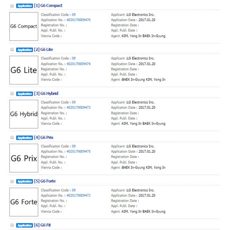 A most előkerült védjegykérvény alapján viszont nem biztos, hogy csak egy darab csúcsmodell várományos az MWC-re, nem valószínű, hogy az LG csak úgy, minden különösebb ok nélkül kíván levédetni megnevezéseket. A G6 Lite feltehetően egy G5 SE jellegű, alacsonyabb teljesítményű variánsként jelenhet meg a későbbiekben, míg a G6 Compact egy kisebb képátlóval szerelt, de teljes értékű modell is lehet. Eddig egy csúcsmodellből érkezett kompakt, viszont más aspektusokban továbbfejlesztett verzió, de sajnos csak Japánban. Bár, a V20 kisebb, viszont vízálló variánsát, az LG V34 isai Beatet errefelé is ígérgették.