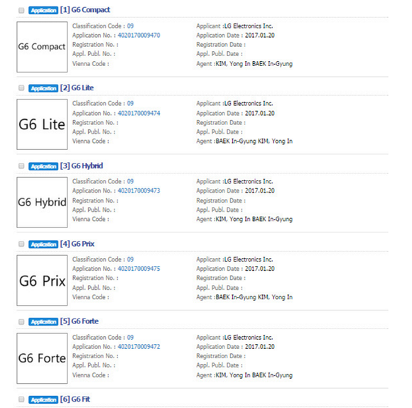 Nyilvánvaló, hogy a legizgalmasabb lehetőség a kisméretű, de teljesítményben és képességekben remélhetőleg megegyező G6 Compact, a fentieken kívül számos más, lehetséges terméknévre is védettséget kértek. Ilyen a G6 Hybrid, amiről megtippelni sem tudjuk, hogy miféle jószág lesz, ha egyáltalán. Van még olyan, hogy G6 Prix és Forte, valamint a célközönségről árulkodó nevű G6 Sense és Young, míg a G6 Fit jó eséllyel valamilyen aktivitásmérő lehet.