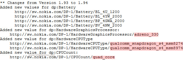 A jelenlegi Windows Phone 8 csúcsmobilok kijelzőfelbontás és processzorteljesítmény terén meg sem közelítik a prémium mezőnybe szánt Android-alapú modelleket, ám a legfrissebb információk szerint ez a korszak hamarosan véget ér. A Nokia szerverein talált adatok szerint a finn gyártó Qualcomm Snapdragon 800 processzor köré épülő megoldáson is dolgozik, vagyis az év végi paletta már bivalyerős tagokat is felvonultathat. Az MSM8274 processzor négy, maximum 2,3 GHz-es órajelen futó Krait 40 magot tartalmaz Adreno 330 grafikus gyorsító társaságában, melyet az MSM8974 lapka LTE-Advanced, CDMA és kínai TD-SCDMA modemmel egészít ki. A Nokia emellett négymagos Snapdragon 400 processzorral szerelt mobillal is készül, melyben alacsonyabb fogyasztású, ám ezzel együtt jóval lassabb Cortex-A7 magok találhatóak.