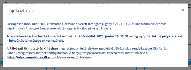 Az új pályázatokat június 15-én reggel 8-tól lehetett beadni, ebben az időszakban az IFKA oldala a túlterhelés miatt többször nem, vagy nagyon esetlegesen működött csak. Egészen mostanáig nehézkes volt az ügymenet, komoly elszántság kellett ahhoz, hogy a pályázatot sikeresen be lehessen adni. Az igen nagy érdeklődés pedig azt eredményezte, hogy június 16-án 12:00-kor lezárták a pályázatok beadásának lehetőségét, mert kimerült az erre a célra szánt keret, az IFKA tájékoztatása szerint több mint 2000 gépjármű vásárlása kapcsán érkezett be kérelem.