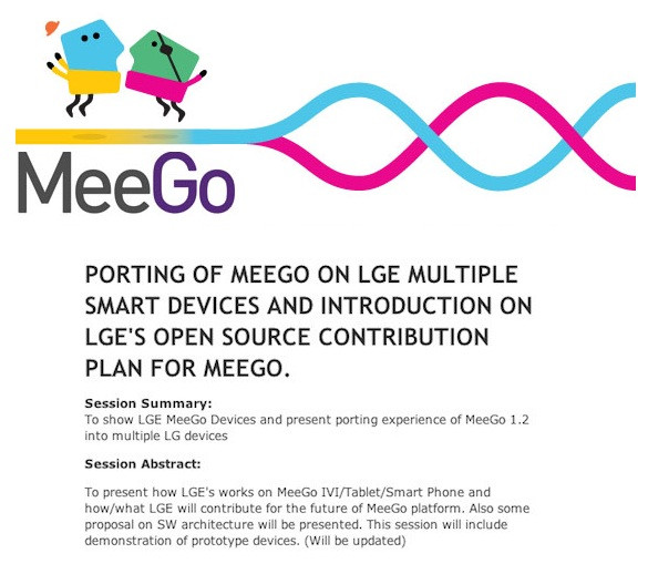 Május 23-án, San Franciscóban, a MeeGo konferencia alkalmával mutatja be az LG az Intel és Nokia által fejlesztett Linux platform köré épülő legújabb megoldásait, melyek első prototípusai az érdeklődők számára is megtekinthetőek lesznek. Egyelőre nem tudni pontosan, hogy a kiállításra kerülő eszközök valaha piacra kerülnek-e, de annyi biztos, hogy a kisebbik dél-koreai gyártó több különböző eszköz bemutatását tervezi. A rendezvény során az LG az internettáblák, telefonok, illetve autós információs és szórakoztató rendszerek jövőjéről is beszél, vagyis a platform jövőjének formálásában is aktívan részt szeretne venni. A Nokia stratégiai váltását követően a dél-koreai gyártó mellett a ZTE és a China Mobile is a MeeGo Linux mellett tette le a voksot.