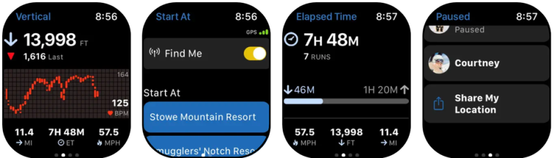 A Sloap alkalmazás szorosan együttműködik az órával, a műveletgomb hozzárendelhető a tevékenység Sloap alkalmazáson keresztül történő elindításához, szüneteltetni pedig a műveletgomb és az oldasó gomb egy időben történő megnyomásával tudjuk, de Sirivel is együttműködik, így a hangutasítás is opció. A Sloap azt is meg tudja mondani, melyik szállás a miénk és merre van, bár a síelés vagy snowboardozás utáni hüttézés azért viszonylag ritkán sikerül olyan erőteljesre, hogy ezt a kérdést segítség nélkül ne tudjuk megválaszolni.