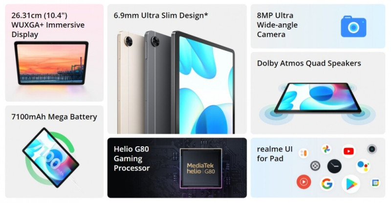 A Helio G80 mellett 3 vagy 4 GB rendszermemória és 32 vagy 64 GB bővíthető belső tárhely dolgozik, az elő- és a hátlapi kamera is 8 megapixel, a négy hangszóró pedig rendelkezik Dolby Atmos minősítéssel. A Realme Pad szintén Indiában kerül piacra WiFi-s és LTE-képes verzióban. A legszerényebb, WiFi-s variáns (3/32 GB) már 56 ezer forintnak megfelelő rúpiáért elhozható, a 4/64 GB-os LTE modell pedig körülbelül 72 ezer forintnyi rúpiára jön ki.