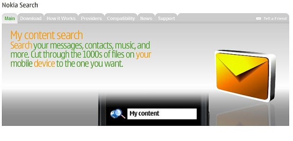 A Nokia Search a Series 60 okostelefonokon található adatokat között szemvillanásnyi idő alatt képes megtalálni bármit. A közvetlenül a készenléti kijelzőről elérhető kereső alkalmazás üzenetek, névjegyzékek, zenék, jegyzetek és egyéb fájlok ezreit képes pillanatok alatt átnézni, de akár az internet felkutatására is alkalmas. A szoftver a finn gyártó műhelyéből származik és teljesen ingyenesen letölthető a terméktámogatás weboldalról.