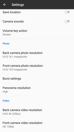Állítható a videók, a képek és panorámaképek felbontása, a GPS, a sorozatkép funkciók, az exponálóhang (kikapcsolható) és a stabilizálás. Kérdés persze a mobilonkénti támogatás, a lassított felvételen túl mindenesetre a OnePlus 3T-vel minden a legnagyobb rendben működött. A hiánylistát az említett záridő és érzékenységállítás, a mérési mód meghatározása, a fehéregyensúly kelvinben szabályozása, a DNG nyersfájl mentése, a kézi fókuszcsúszka és a kézi videoparaméterek szabályozása tölti meg. Persze, ha támogatott, ilyesmire ott vannak a camera2 API-s szoftverek, például a Manual Camera.