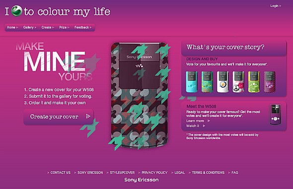 A Sony Ericsson ezzel ellentétben teljesen új lehetőségeket lát az előlapokban színkavalkádjában, hiszen az új szolgáltatása saját egyedi előlapok tervezésére készteti a felhasználókat, méghozzá egy egyszerű online felületen. Az alábbi linken elérhető Sony Ericsson MINE szolgáltatás segítségével Sony Ericsson W508 számára lehet teljesen egyedi burkolatokat készíteni, melyet aztán 20 dollár körüli áron világszerte kiszállít a gyártó. A 93,5x50x14 milliméteres és 98 grammos Walkman W508 kagylómobil 2,2 hüvelykes, 240x320 képpontos fő és 1,1 hüvelykes, 128x36 képpontos másodlagos kijelzőt, 3,2 megapixeles fixfókuszos kamerát, gravitációs szenzort, HSDPA és EDGE átviteli képességet, sztereó Bluetooth modult és 10 óra beszélgetés kínáló akkumulátort kapott.