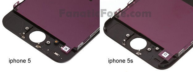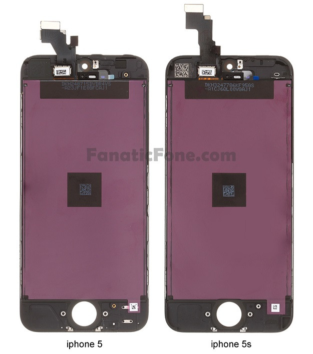 Az első homályos kémfotók után végre sokkal jobb minőségű képeken is látható az iPhone 5S előlapja, melyet ráadásul az előd azonos komponense mellett pózol. Megfigyelhető, hogy a két panel kívülről látható szenzorainak elrendezése és a megjelenítő mérete is teljesen azonos, csupán a belső csatlakozók és néhány felhasználó által nem látható részlet változott. Az átrendezés egyik oka talán a nagyobb kapacitású akkumulátor elhelyezése lehet, mely mellett az új processzor eltérő hőleadása is okot jelenthet a további optimizálásra. A The Wall Street Journal értesülései szerint az új iPhone egyik legnagyobb dobása a menü gombba integrált 2D ujjlenyomat-olvasó lehet, mely feleslegessé teszi a jelszavak megadását.