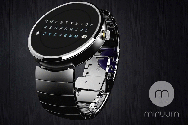A kijelzőből csupán minimális területet igénylő Minuum gombsor nemrég a Moto 360 kerek felületére is átírásra került, mely okosóra ugyan egyelőre teljes pompájában nem is került bejelentésre. A készülék Android Wear operációs rendszere ugyan a hangalapú bevitelt helyezi előtérbe, ám bizonyos esetekben a jóval diszkrétebb csendes gépelés is hasznos lehet. A kerek felületre optimizált Minuum működése az alábbi animált képen is látható.