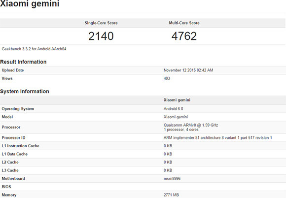 Egy AnTuTu pontszám már korábban felbukkant a tesztet végző hardveres konfiguráció ismertetése nélkül, most viszont egy Xiaomi Gemini nevű masina megnevezte GeekBenchben a Qualcomm rendszerchipjét, amelynek kódjele MSM8996. A négy Kyro mag segítségével a szóban forgó, Mi 5-nek tulajdonított készülék 2140 (egymagos), illetve 4762 pontos eredményt ért el (többmagos), aminél már láttunk acélosabbat, persze több dolog is befolyásolhatja a pontszámokat, például a készülék és komponenseinek hőmérséklete. A táblázat szerint a zesztet végző eszközt 3 gigabájt RAM-mal szerelték fel és Android 6.0-t futtatott, ami újabb magyarázat lehet arra, hogy miért kell még várni az Mi 5 bemutatójára, a Marshmallow rendszerverzió ugyanis még meglehetősen friss.