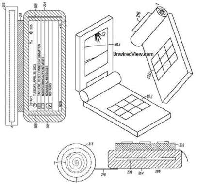 In the picture below you can see an illustration from Motorola's patent request, which sketches the operation of mobile phones with flexible display. It is clearly visible in the picture, that Motorola's idea is nothing else than the improvement of the concept of standard clamshell phones and openable communicator type designs in a way that in the place of the upper flip there is a rollable display. Motorola has been already trying new types of display technologies before. The Motorola F3, for example, was based on an extremely low consumption electronic ink, which couldn't become a successful cheap model only because its segmented display with a disastrous layout. The market of flexible displays is quite small: there are only prototypes of color displays and monochrome ones have a low resolution. The solution outlined by Motorola is expected to not to be implemented in the near future.