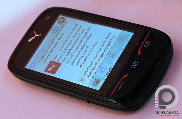A kezelőfelületbe integrált közösségi szolgáltatások áttekinthetően működnek, a Puma telefon egyik legjobb dobása azonban az, hogy a kontrasztos kijelzőn rendkívül nagy betűket használ. A görgetés és a sebesség a kiállított darabon szemlátomást kiváló volt, reméljük, hogy a bolti példányokban is így lesz.