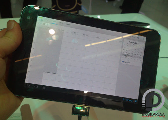 Az apróbb tablet 7 inches megjelenítőt kapott, a burkolat alatt ugyanaz a négymagos processzor dolgozik, mint a másik masinában, azonban itt bejön a képbe az Leadcore nevű kínai cég, amely erre a platformra épít egyedi megoldásokat. Hogy ez konkrétan mit jelent, arra nemigen találtunk választ, lévén ezen a gépen sem az ICS futott a standon. A kisebbik táblagépen is öt megapixeles a hátsó, és kettő az elülső kamera felbontása, autofókuszt kapott a hátlapon található. A RAM és a ROM mérete is megegyezik a nagyobb masina képességeivel, viszont nincs HDMI kivezetés.