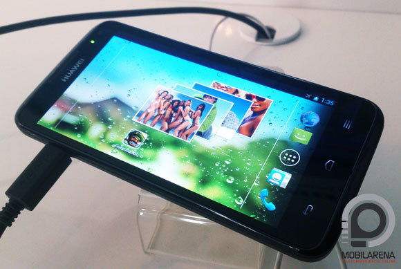 Ahol a négymagos táblagépet videóra vettük, ott volt végre lehetőségünk kamerával megdolgozni a Huawei csúcstelefonját is, az Ascend D-t. A négymagos processzor és 16 magos GPU-val szerelt gépet egy hatalmas tévére is rákötötték, hiszen az 1280x720 pixeles kép még ebben a méretben is élvezhető volt. A készülék kijelzője élőben is lenyűgöző, az igazán megdöbbentő élmény akkor éri az avatatlan felhasználót, amikor először megemeli a telefont.
