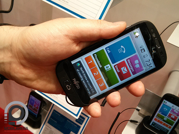 Most viszont Európának is megmutatták a Fujitsu Stylistic S01 névre hallgató telefonjukat, mely érdekes oldalról közelíti meg az okostelefonok fogalmát. A kütyü ugyanis egyszerre próbálja kihasználni a rezisztív és a kapacitív érintőképernyő előnyeit, ugyanis a teljesen átszabott Android 4.0.4 Ice Cream Sandwich kezelőfelület a véletlen megnyomások elkerülésének jegyében készült, legfőképpen az idősebb korosztályra gondolva. Van egyébként egy külön feltolható "pöcök" is a hátlapon, amit elmozdítva egy vészjelzést küld a telefon (ha például valaki elesik, vagy baleset éri). Az ikonok óriásiak, valamint a főképernyőre is külön mozdulattal tudunk jutni, de ugyanennek eléréhez egy fizikai gombot is kapunk. A kijelző egyébként 4 hüvelykes és 800 x 480 pixel felbontással rendelkezik, egy kézzel bátran használható.