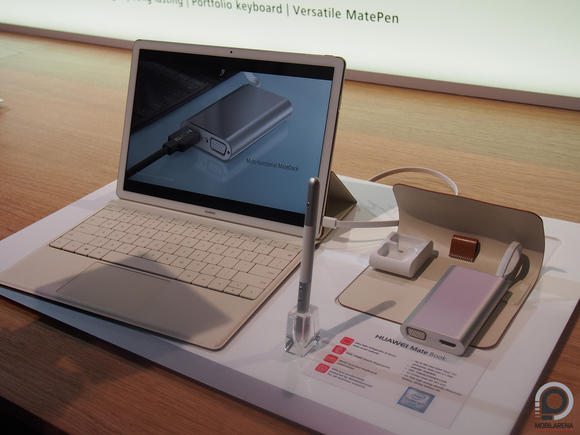 Kiegészítőkből sincs hiány, a MatePen egy stylus, amely prezentációs léptetőgombokat és lézerpointert is tartalmaz, 2048 szintű nyomásérzékelővel és elasztikus tollheggyel van ellátva. Egy órás töltési idővel a cég szerint egy hónapig rajzolgathatunk vele. A másik okosság a MateDock, amely egy külső akkunak kinéző, szintén tokba tehető hub, LAN, microUSB, normál USB és HDMI interfészekkel, valamint van még egy zajszűrős headset is, amelyet a MateBookról lehet tölteni. Ezek azonban mind feláras kütyük, a billentyűzet 150, a toll 70, a MateDock további 100 eurót kóstál. Aki a maximumra törekszik, az már félmillió forint feletti árnál jár.