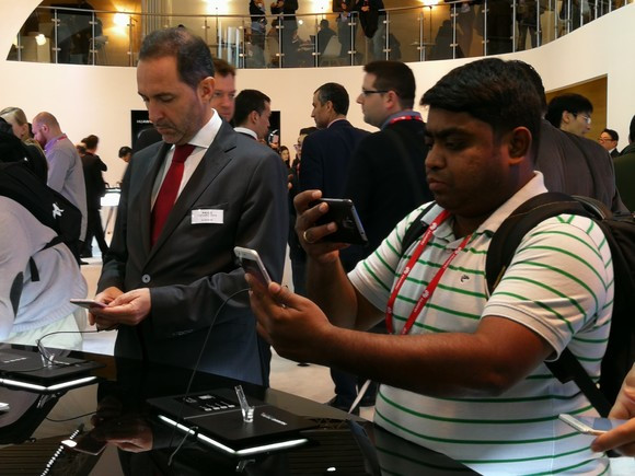 A két készülék kameraszoftvere ugyanazt tudja, ám akad egy fontos különbség: a nagyobbik modell f/2,2-es rekeszértékű lencsék helyett nagyobb fényerejű, f/1,8-as optikákkal lett felszerelve hátul, és kíváncsiak voltunk, mit tud élesben bevetve, úgyhogy lesétáltunk az MWC 3-as csarnokába, hogy egyet a kezünkbe ragadjunk. Őt: