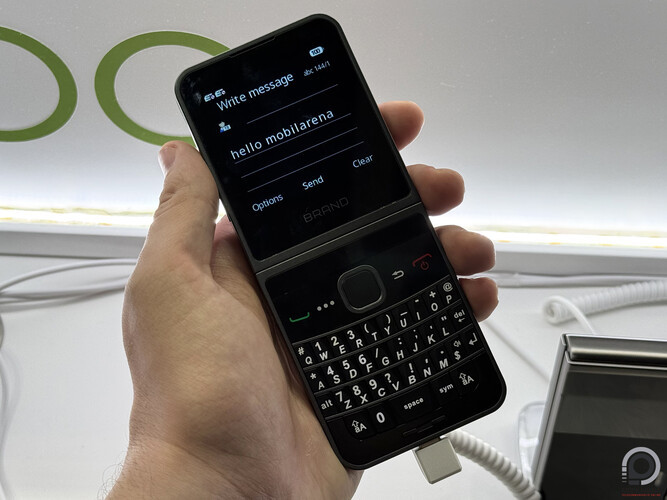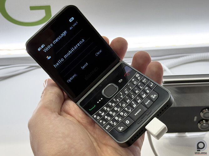 A Frog egyébként androidos okostelefonokat, köztük hajlítható kijelzőseket is mutogatott, a legérdekesebb mégis az a nyomógombos mobiltelefon volt, amibe beleszuszakoltak egy QWERTY billentyűzetet. Ránézésre kissé Blackberry Bold 9900, de a gépelési élmény kanyarban sincs, a Frog gombjai gagyi, kopogós műanyag érzetet keltenek, a billentyűút sem volt egységes a klaviatúra gombjain, ahogy végignyomkodtam. A zsanér viszont korrektnek tűnt, nyitni és csukni is kényelmesen tudtam vele a telefont, ez elvileg saját fejlesztésük és le van védve a mechanika.