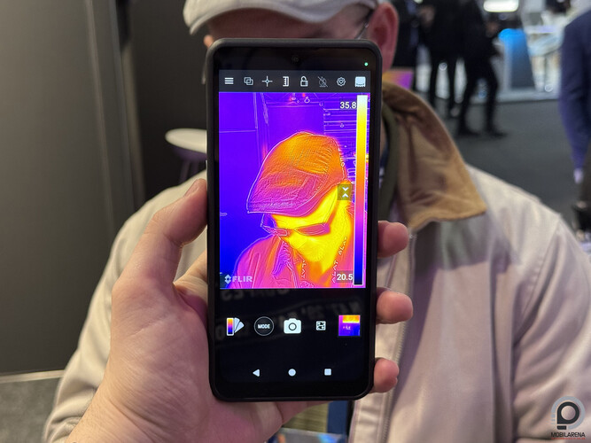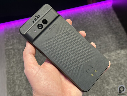 Eltűntek az elmúlt években a nagyobb nevű gyártók a strapakészülékek piacáról, helyüket pedig átvették a kínai márkák. Ezek között is vannak megbízhatóbbak, például az Ulefone vagy a Blackview, akikkel a FLIR is tető alá hozott már együttműködést. Egy ilyen művelethez és a Thermal by FLIR jelző megszerzéséhez egy jó adag kritériumnak kell megfelelni, mondta nekünk büszkén a FLIR Systems (Teledyne FLIR) képviselője standjukon. Itt volt kiállítva a Sonim új mobilja, az XP Pro Thermal 5G, melynek hátulján egy FLIR Lepton radiometrikus hőkamera modul található. A telefonon futó Android 14-en pedig ott a MyFLIR Pro alkalmazás, ami be van kötve a FLIR által biztosított rendszerbe, így elérhetők a jelentések, egy gombnyomással készíthetők jelentések. A FLIR képviselője szerint ez a legnagyobb előnye a Sonim XP Pro Thermal telefonnak más gyártók telefonjaival szemben, hogy a FLIR komplett szoftveres ökoszisztémája is ott van mögötte. A hőkamera mellett egy 50 MP-es széles látószögű kamera van még a telefon hátlapján és egy LED villanó.
