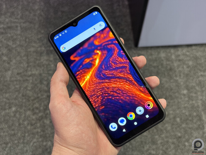 Elnézve és kézbe fogva a készüléket egyébként mérete és formája is korrekt, mintha egy Google Pixel lenne védőöltözetben. A gumírozással megerősített műanyag ház alatt egy Snapdragon 7 Gen 3 található, 8 GB RAM, 256 GB tárhely (ez microSD-vel bővíthető). A kijelző 6,58”-es méretű FHD+ (1080 x 2408 pixel) felbontású IPS LCD panel 90 Hz-es frissítéssel, rajta Gorilla Glass Victus 2 védelem.
