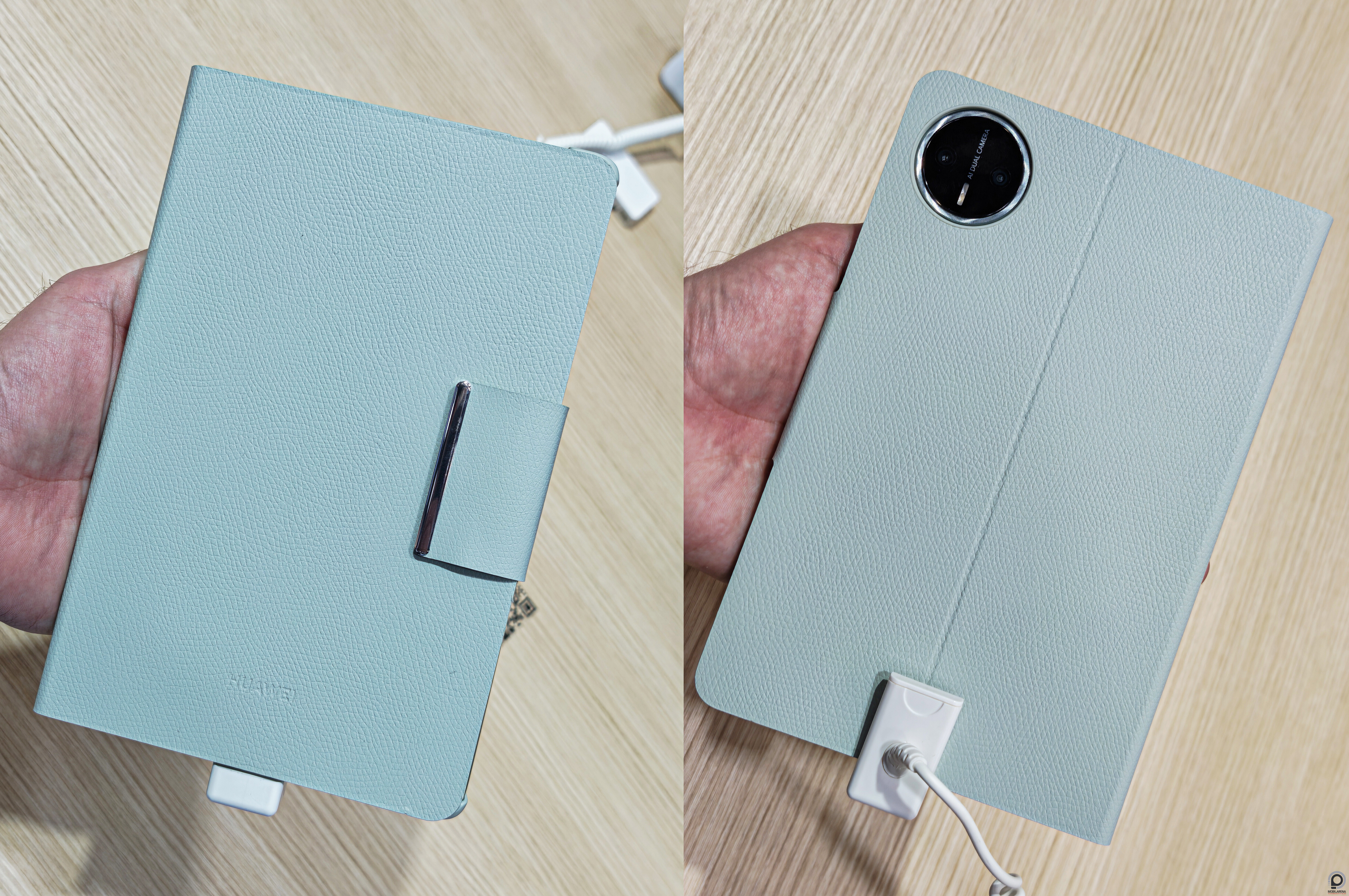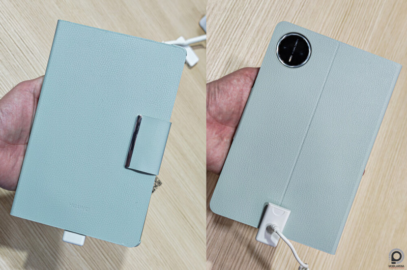 Fontosabb a két hangszóró sztereó hangzása, mint a kamerák teljesítménye, de azért az előlapon a sarokba 32 megapixeles lyuk került, a hátlapra pedig 50 megapixeles főkamera, 8 megapixeles ultraszéles segéd és LED villanó. Láthatóan jegyzetfüzetszerű tok is van tolltartóval, bár ezek külön tartozékok és nem részei az alapcsomagnak.