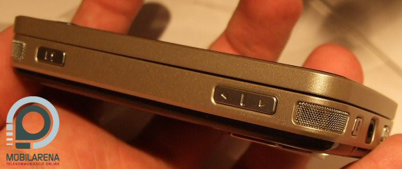 But at Nokia's stand our press pass worked like a miracle again, so we managed to take the phone in our hands. We liked very much the fact that by pushing down the two-way slider cover we can access the music buttons, which light up when we slide the upper part in the normal direction. Regarding the back of the phone, the small, slim support that can be turned out of the camera's frame seemed a bit comical, but time will tell if it is good for anything and how stable it is in the long run.
