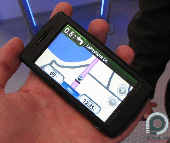 We visited the stand in Garmin in our last walk at Mobile World Congress 2008. The employees of the company were looking like to want to go home but flourishing the Press ticket made them listen to our request. It was to try a working Nüvifon because there was not a one shown, only some dummys behing the show-glass. As it turned out, the manufacturer took no working Nüvifon to the congress, only a device that has seriously awanting software, it was switching among two - yes, only two - screens, one of them was the main menu, the other was the navigation. Naturally neither of them worked.