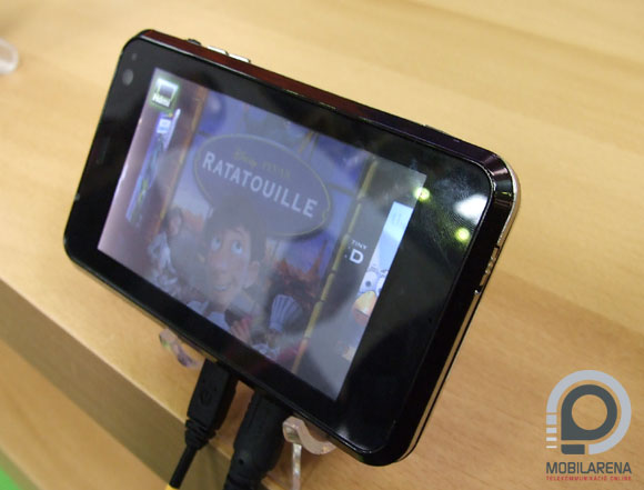 As a result of the developments a chip has been created, that can play high resolution movies without problems, even on the screen of a mobile device, or on any kind of television, with the help of the TV-out cable. We saw an example of the latter one at the stand and it was pretty impressive.