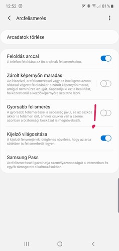 Ha már itt tartunk, kipróbáltuk egy Samsung Galaxy Note10-zel, hogyan működik a 2D arc alapú feloldás, már azon kívül, hogy gyorsan és ritka idétlen szögekből is. A hatékonysággal nyilván a Google készülékein sincs probléma, de a Note10 is készséggel feloldott, pedig csukva volt a szemem. Ha valaki az arcom elé tartja a készüléket, míg alszom, simán beengedi. Az iOS-ben és a One UI-ban viszont ezt ki lehet kapcsolni. Úgyhogy ezúton azért jelezzük, hogy alapértelmezett beállítások mellett ez aktív a gyorsabb felismerés érdekében. Ha aggályaink vannak, deaktiváljuk a funkciót. Az arcfelismerés működni fog, de legalább fél szemmel a telefon irányába kell néznünk.
