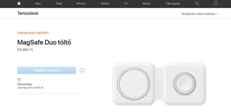 Idő közben pedig a hivatalos magyarországi árakra is fény derült. Az Apple itthon is listázta a hamarosan elérhető kiegészítőt, ami errefelé kissé többe kerül. Ahogy az lenni szokott. A MagSafe Duo forintban 54.990 pénzbe kerül, ami nem pont annyi, mint a 129 dollár, a 30 wattos adapter pedig 19.990, így ez a kör itthon 74.890 forintba lesz.