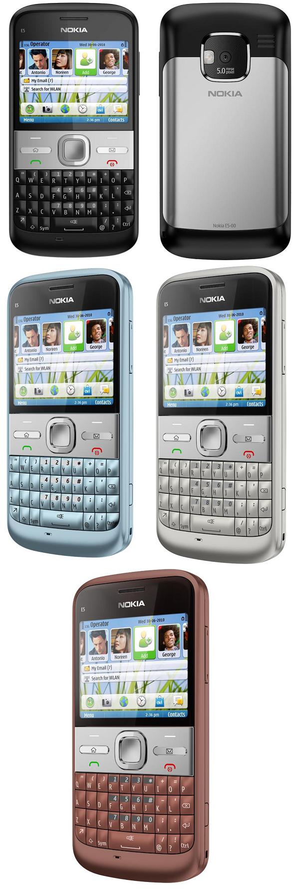 A Nokia által ma leleplezett kommunikációra kiélezett trió utolsó tagja az Eseries E5-00, mely már korábban is szerepelt oldalunkon. A Symbian Series 60 3rd Edition alapú jövevény a közösségi szolgáltatások iránt nyitott üzleti vásárlóközönséget célozza meg, akik számára a Microsoft Exchange és IBM Lotus NotesTraveler kliensek, illetve a korlátlan navigáció jelenléte legalább olyan fontos, mint a közösségi oldalak elérése, a kijelzőn elhelyezhető kedvenc kontaktok, vagy a telefonkönyvbe integrált csevegés, fájlmegosztás és Facebook üzenetek elérése. A Nokia E72-nél könnyebb de vastagabb készülék 2,4 hüvelykes, 320x240 képpontos kijelzőt, teljes QWERTY gombsort, 5 megapxieles autofókuszos kamerát, GPS, WLAN és sztereó Bluetooth modult, 10,2/2 megabites HSPA átviteli képességet, RDS FM rádiót, 256 MB belső memóriát, 3,5 milliméteres fülhallgató és microUSB csatlakozót, valamint GSM hálózatokon akár 18,5 óra beszélgetést is biztosító 1.200 mAh kapacitású akkumulátort kapott. A harmadik negyedév során fekete, fehér, halványkék, szürke és barna árnyalatokban piacra kerülő 115x59,8x12,8 milliméteres és 126 grammos Nokia E5-00 várhatóan nettó 180 eurós, azaz hazai áfával számolva bruttó 60.000 forintos áron lesz elérhető. Az alacspomagban sztereó fülhallgatót, 2 GB-os memóriakártyát és microUSB kábelt is mellékel a gyártó.