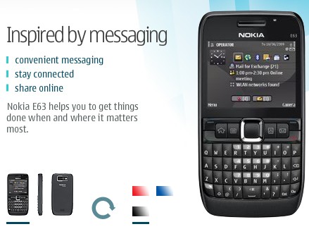 Nokia E71's cheaper and less feature-filled brother, E63, has been available in blue and red until now, but a black edition has been launched as well. The handset that costs about 200 euros has been reviewed by our site as well, and received a highly recommended award. The 113 x 59 x 13 mm large Nokia E63, weighing 126 grams, has a 2.36", 320 x 240 pixels large display, 3G support, WLAN and stereo Bluetooth, a 2 megapixel camera with fixed focus, a stereo FM radio, a standard 3.5 mm headset jack, 120 MB of internal memory, a microSDHC card slot, and a 1,500 mAh battery, providing 11 hours of uptime.