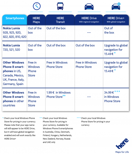 A Nokia a napokban minden Windows Phone 8 alapú készülékre elérhetővé tette az eredetileg Lumia-exkluzív navigációs alkalmazását, a Here Drive+ névre hallgató appot. A finn gyártó saját térképeit használó alkalmazása nem igényel folyamatos internetkapcsolatot, valamint turn by turn hang alapú navigációval is rendelkezik. Ám míg a Lumia modellekre ingyenes, az egyéb készülékekre körülbelül 35 eurót, azaz körülbelül tízezer forintot kell fizetni érte.