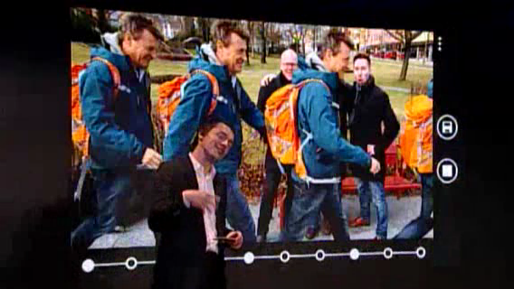 Stefannál a szó, a Smart Camera alkalmazásról van szó, mely egy számos szolgáltatást magába tömörítő fényképezési program. Ilyen például a képszerkesztő, a Best Shot 10 képből választja ki a legjobbat, az Action Shot összefűzi a képeket, a Motion Focus elmossa a hátteret (ez tényleg látványos), a replace faces pedig több fotót lő egyszerre, az arckifejezéseket mi választhatjuk ki. Végül, de nem utolsósorban a gyors mozgásokat is kivághatjuk a képből. Frankó dolgok, de szinte mindet láttuk már a konkurenciánál. Élő demó: Jo kosármezben, egy egyláb-kétkéz zsákolást láthatunk tőle. Nem vicc.
