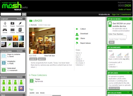 A Nokia által beindított, jelenleg még béta állapotú MOSH a tartalomcserélés egy új formája. Segítségével a felhasználók megoszthatják saját tartalmaikat, képeket, hangokat, videókat vagy akár játékokat tölthetnek fel rá és tehetik elérhetővé mások számára, közvetlenül mobiltelefonról, PC-ről vagy akár hordozható internet eszköztől. A Nokia MOSH szolgáltatásának használatához regisztrálni kell a gyártó oldalán, mely a következő link segítségével érhető el.