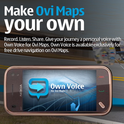 Az ingyenes autós és gyalogos navigációt kínáló Ovi Maps mostantatól a gyári hangok mellett saját vagy mások által rögzített felvételek használatát is lehetővé teszi. Az Ovi Store online alkalmazásboltól letölthető Nokia Own Voice szoftver segítségével körülbelül 7 perc alatt lehet rögzíteni a navigációhoz szükséges 53 hangutasítást, melyeket az Ovi Maps 3.03 (vagy újabb) navigációs szoftver közvetlenül is használni tud, illetve az Own Voice szerverekre is feltöltésre kerül, ahonnan bármikor újra letölthetővé válik, illetve az ismerősökkel is megosztható a Facebook és Twitter közösségi oldalakon. Az Own Voice kliens nem csak saját, hanem mások által feltöltött és megosztott hangok beszerzését is lehetővé teszi, vagyis az új Ovi Maps hangjai teljesen egyediek is lehetnek. Az Own Voice egyelőre csak angolul érhető el, de később várhatóan minden támogatott nyelvre kiterjesztésre kerül.