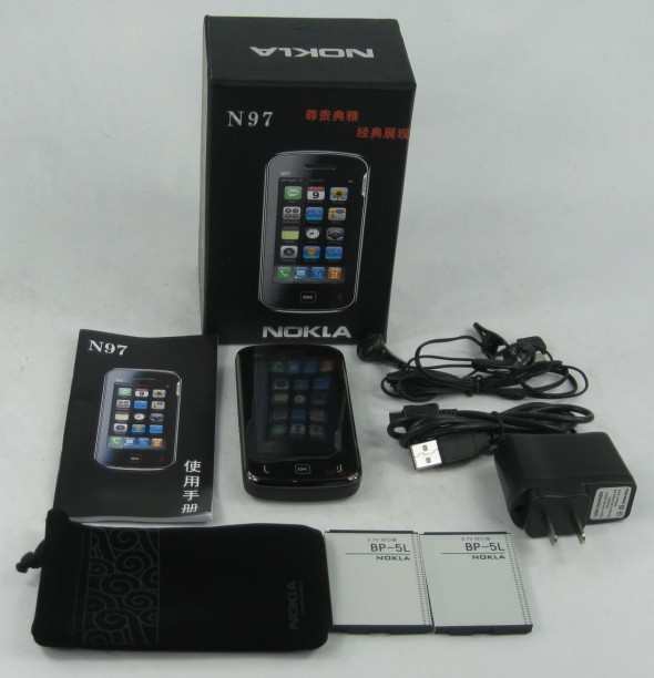 Nokia N97 is one of the most feature-filled handsets from the Finnish manufacturer, which has 32 GB of internal memory, a memory card slot, HSDPA support, GPS, WLAN, stereo Bluetooth, a 5 megapixel camera, a 3.5" nHD touchscreen and a sliding QWERTY keyboard as well. NOKLA N97, pictured below, has only its name resemble the top Finnish phone, as the device's features are far from the original specs, as it doesn't even have a keyboard. Although Chinese models have improved a lot lately, their features are still far from the original solutions. It is another specific thing that the companies rather create such bad clones instead of launching their own, high-quality products that could be sold legally worldwide.