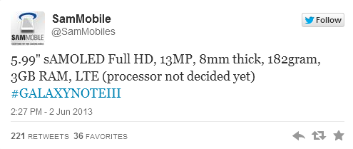 A Galaxy Note III leleplezésének közeledtével egyre több érdekes hírmorzsa kerül napvilágra a várható műszaki paraméterekkel kapcsolatban, melyek közül az egyik legfrissebb csokrot a The Korea Economic Daily szolgáltatta. A beszámoló szerint a Samsung következő óriásmobilja 3 GB RAM-mal a fedélzetén érkezik majd, mely mellé Exynos 5 Octa vagy Snapdragon 800 processzor tartozhat. A 13 megapixeles felbontású kamera jelenléte szintén nem meglepő, mint ahogy az 5,7 és 5,99 Full HD megjelenítő használata is teljesen valószerűnek tűnik. A több oldal által is megszellőztetett előzetes paraméterek szerint az S Pen digitális toll használata ellenére a Note III teljes vastagsága 8 milliméterre csökken, ám a 182 grammos tömegével továbbra sem a pehelykönnyű óriások között indul harcba.