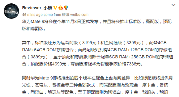 A legfrissebb információk szerint az év elején megjelent, és több szempontból is kiválóan teljesítő Mate 8 utódjára már nem kell sokat várni. A Weibón felbukkanó poszt nem csak a várható megjelenésről, de az elérhető variánsokról és az árazásról is árulkodik. A GFX Bench adatbázisában megmutatkozó készülék jó eséllyel a Mate 9 volt, így okkal számíthatunk rá, hogy a Huawei legújabb phabletjét szintén 5,9 hüvelykes képátlóval szerelik, valamint a HiSilicon Hi3660-as kódnevű chipset fogja életre keltei, ami a 16 nanométeres FinFET gyártástechnológiával készült, Kirin 950 utódját, a Kirin 960-at sejteti.