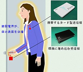 Az NTT piacra dobta első olyan megoldását, mely kábelek helyett az emberi bőr felületét használja fel adatátvitelre. Az NTT Firmo egy innovatív megoldás, mely egy hitelkártya méretű adóegység köré épül, melyet a tulajdonosa a zsebében hordhat. A kártya általa tárolt adatokból előállított gyenge elektromos tér jeleit ezután az emberi test továbbítja. Ha a felhasználó megérint egy olyan eszközt, mely rendelkezik megfelelő vevőberendezéssel, akkor az képes a jeleket visszaalakítani. A Firmo első változata még csak 230 kbps sebességre, azaz másodpercenként 28,75 kbyte továbbítására képes, de hamarosan érkezhet a hang és videojelek továbbítására is alkalmas, olcsó 10 megabites variáns is. A Firmo az NTT RedTacton HAN (Human Area Network – emberi hálózat) megoldására épül, mely egyszerű fizikai érintés útján létrejött kommunikációra alkalmas. Az NTT szerint a megoldása az emberi szervezetre teljesen ártalmatlan, ugyanakkor megnövelheti a cégeken belüli biztonságot legyen szó biztonsági kapuról, vagy akár hagyományos ajtóról is, mely csak akkor nyílik, ha az emberi kéz a megfelelő jelsorozatot továbbítja számára. A most bejelentett öt adóból és egy vevőből álló szett ára még meglehetősen magas, mintegy 8.000 dollárt kér érte a gyártó, de a tömegtermelés megkezdésével az ár gyors esése várható.