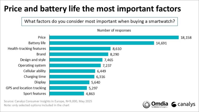 A Canalys felmérése szerint viselhető kütyü vásárlásakor az ár a legfontosabb vásárlói szempont, aztán az üzemidő, majd az egészségkövető funkciók listája, a márkanév, a stílus, az operációs rendszer, a mobiladat kapcsolat, a töltésidő, a kijelző, a GPS-es képességek, végül a kérdéskör legvégén a sportképességek. Ez annyiból meglepő, hogy az edzésfókusz a gyártók kommunikációjában szinte mindig a középpontban van, míg például az üzemidő kevésbé, ahogy egyébként az átlagárak is növekedtek, mégis ez a főszempont a válaszadók szerint.