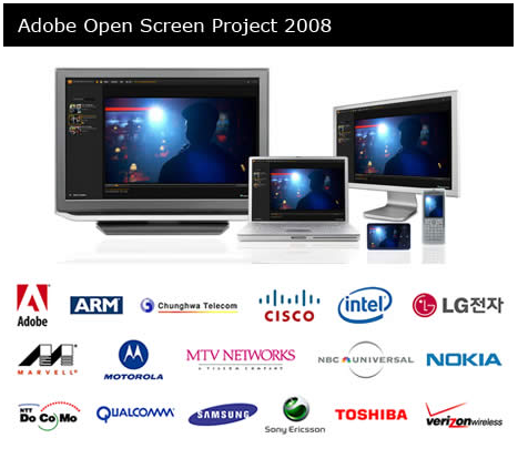 Az Adobe által vezetett Open Screen Project kezdeményezés lényege, egy olyan fejlett multimédiás internetes felület megalkotása, mely révén a felhasználók könnyen oszthatnak meg képeket, videókat, hangokat és érhetnek el gazdag multimédiás internetes tartalmakat a legkülönbözőbb platformokon, mobiltelefontól egészen a számítógépekig. Az Adobe kezdeményezését olyan hardvergyártók is támogatják, mint például az ARM, Qualcomm vagy az Intel, de a mobiltelefónia nagyjai, a Nokia, Samsung, Sony Ericsson, Motorola, LG és a japán mobiltelefonokra igen nagy hatással bíró NTT DoCoMo, valamint az olyan jelentős tartalomszolgáltatók, mint az MTV Networks, BBC és az NBC Universal is a projekt mögött sorakozott fel. A projekt részleteiről és jövőjéről a Max Developers Conference alkalmával számol be az Adobe. Az ARM-mel közös projekt keretében a Flash 10 számára egy olyan mobiltelefonos futtatókörnyezet készül el, mely nem jelent nagy terhelést az akkumulátor számára. Az Adobe célja, hogy a Flash és az Adobe Air segítségével egy olyan fejlesztőkörnyezetet hozzon létre, mellyel számos platformra lehet kompatibilis multimédiás tartalmat készíteni. A Qualcomm szerepe a BREW 1.0 SDK integrálásának kapcsán lép be a képbe. Az ARM szerint, mely processzorai és megoldásai a jelenlegi mobiltelefonok mintegy 90 százalékának alapját is jelentik, számos mobiltelefontulajdonos panaszkodik arra, hogy bizonyos oldalak hibásan jelennek meg mobiltelefonon, mely a projektrévén minden bizonnyal megváltozhat. Az ARM ugyanakkor nagy hangsúlyt kíván fektetni a megfelelő energiagazdálkodásba, hiszen önmagában a gazdag multimédiás élmény nem elegendő, ha ahhoz nem társul megfelelő üzemidő.