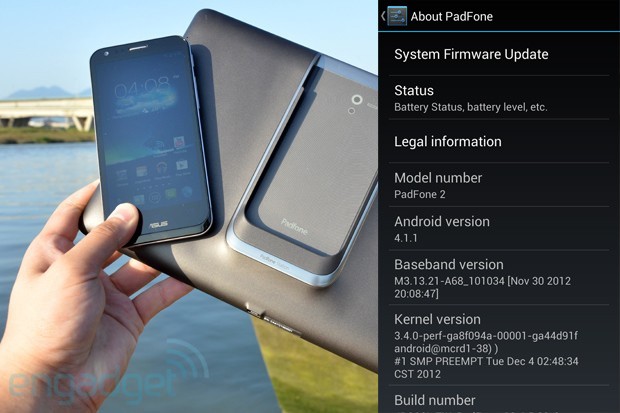 Az ASUS közleménye szerint elkészült a PadFone 2 Android 4.1 Jelly Bean rendszerfrissítése, mely a megszokott felületet immáron a Google friss operációs rendszerének szolgáltatásaival kombinálja. A firmware letöltése a táblagép-mobiltelefon kombináció „lelkére”, vagyis magára a telefonra lehetséges, hiszen 10,1 hüvelykes 1280 x 800 képpontos IPS kijelzővel felvértezett 514 grammos internettábla kabát valójában csak egy méretes megjelenítő 5000 mAh kapacitású akkumulátorral. A 137,9 x 68,9 x 9 milliméteres és 135 grammos alapmobil 4,7 hüvelykes, 720 x 1280 képpontos kijelzőt, 13 megapixeles fő és 1,3 megapixeles előlapi kamerát, 4G LTE hálózati támogatást, 1,5 GHz-es négymagos Qualcomm MDM215m/APQ8064 processzort, Adreno 320 grafikus gyorsítót és 2140 mAh kapacitású akkumulátort kapott.