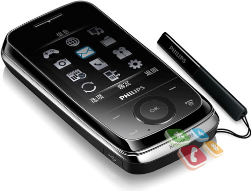 A rendkívül hosszú üzemidővel kecsegtető Philips Xenium termékcsalád nemrég egy újabb két SIM egyidejű kezelésére is képes érintőkijelzős taggal bővült. A várhatóan mérsékelt áron piacra kerülő jövevény 3,1 hüvelykes, 240x320 képpontos rezisztív érintőkijelzőt, 2 megapixeles fixfókuszos kamerát, GPRS átviteli képességet, sztereó Bluetooth modult, microSD foglalatot, előre telepített játékokat és email klienst is kapott. A GSM 900/1800 hálózatokon használható jövevény hivatalosan csak Oroszországban és Kínában lesz elérhető, de vélhetően kisebb hazai GSM üzletek is felveszik majd a kínálatukba.